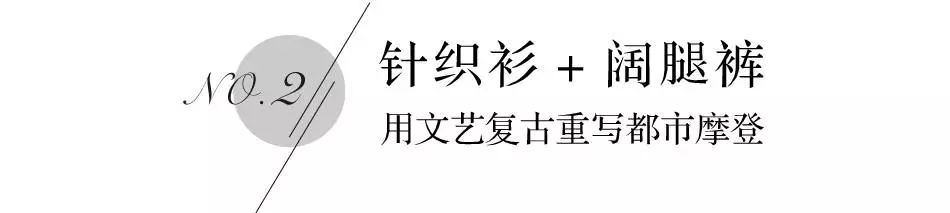 不用惧怕深色衣装会带来平庸,低调内敛的色细下裹挟的是一颗不随波逐流的气质内心。针织衫作为秋冬衣橱里的必备单品,一改往日平庸单调的视觉印象。加长的袖管繁复的荷叶边重塑中世纪文艺复古,微微扩张的袖口与宽松裤装相呼应,摆出第一道步伐便尽显都市女性的前卫摩登。